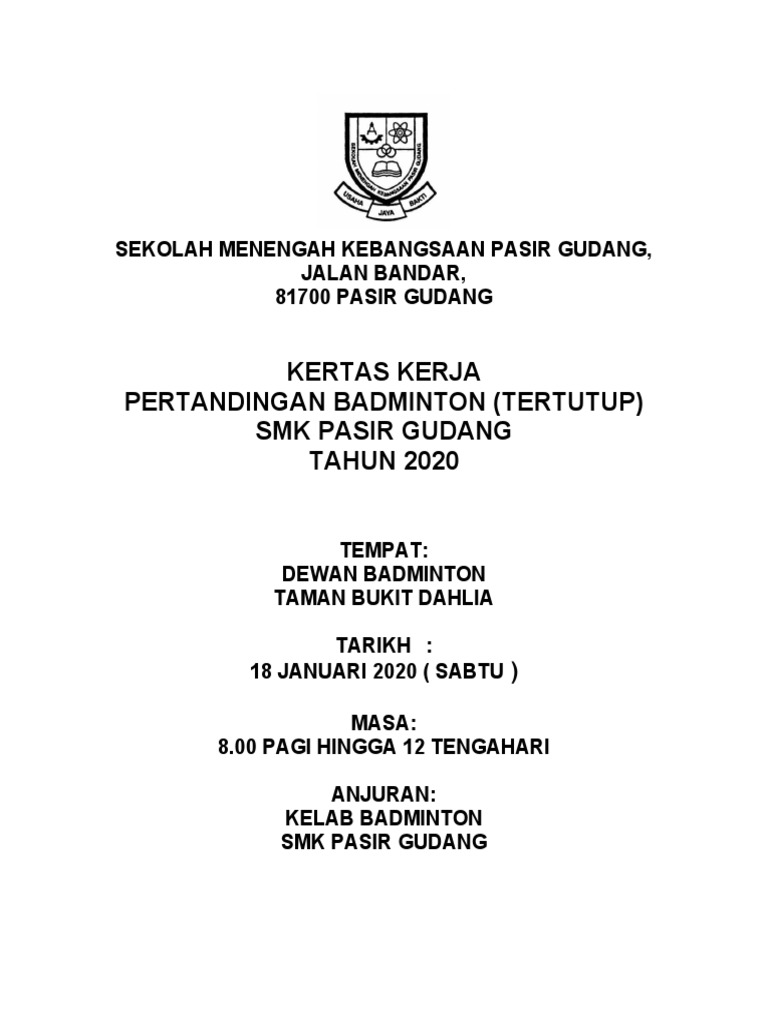 Kertas Kerja Pertandingan Badminton 2020